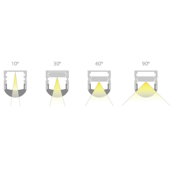 10 30 60 90 degree Lighting Beam Angle LED Strip Aluminum Profile